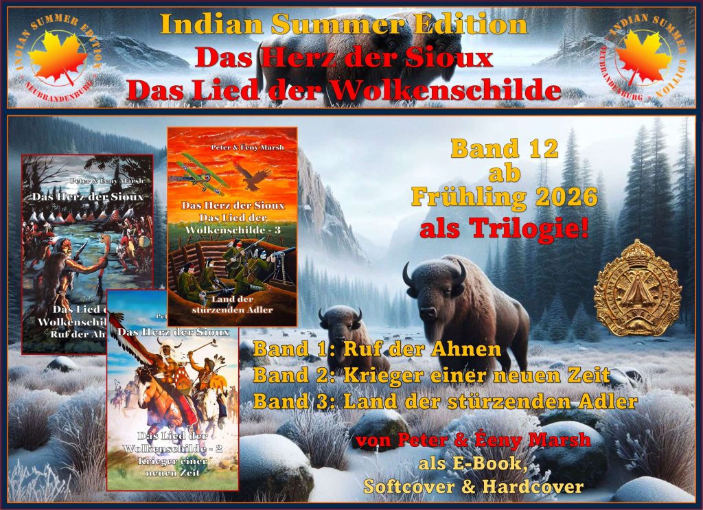 Nun wo die ersten beiden Bände von „TUSCARORA“ bzw. der Sonderedition „An den Flüssen der TUSCARORA“ veröffentlicht wurden, schreiben wir in jedem Fall an „Das Herz der Sioux“ weiter, speziell an Band 12 – Das Lied der Wolkenschilde“ Teil 2: „Krieger einer neuen Zeit“, somit an unserem 16. Sioux-Roman und welcher definitiv nicht der letzte bleiben wird!